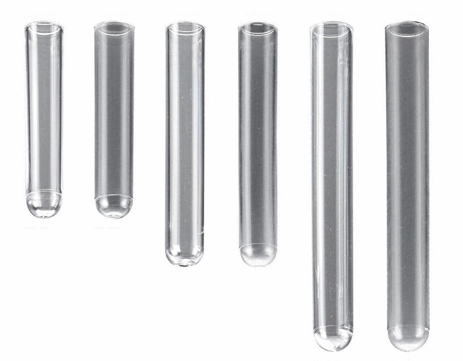 These disposable test tubes are packaged for high volume users in economical bulk quantity cases. Supplied non-sterile and without caps, three sizes. 3, 5 and 8 mL are available in translucent polypropylene or crystal-clear polystyrene. Plug-type caps are available separately. Packed in convenient resealable zip bags